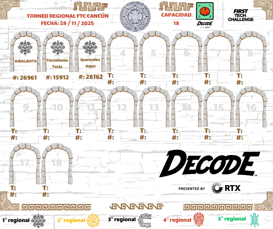 Nos complace darles la bienvenida al Regional FTC CANCÚN, un evento en el que los equipos tendrán la oportunidad de demostrar sus habilidades en diseño, programación, estrategia y trabajo en equipo, mientras forman parte de la comunidad de FIRST Tech Challenge en México.