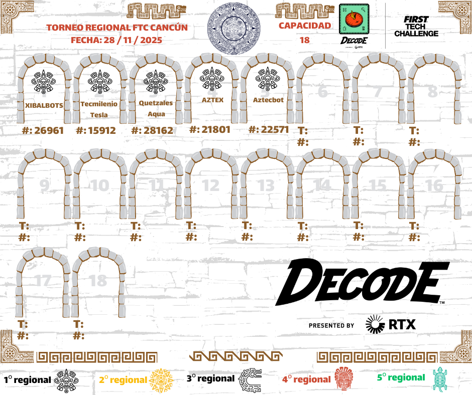 Nos complace darles la bienvenida al Regional FTC CANCÚN, un evento en el que los equipos tendrán la oportunidad de demostrar sus habilidades en diseño, programación, estrategia y trabajo en equipo, mientras forman parte de la comunidad de FIRST Tech Challenge en México.