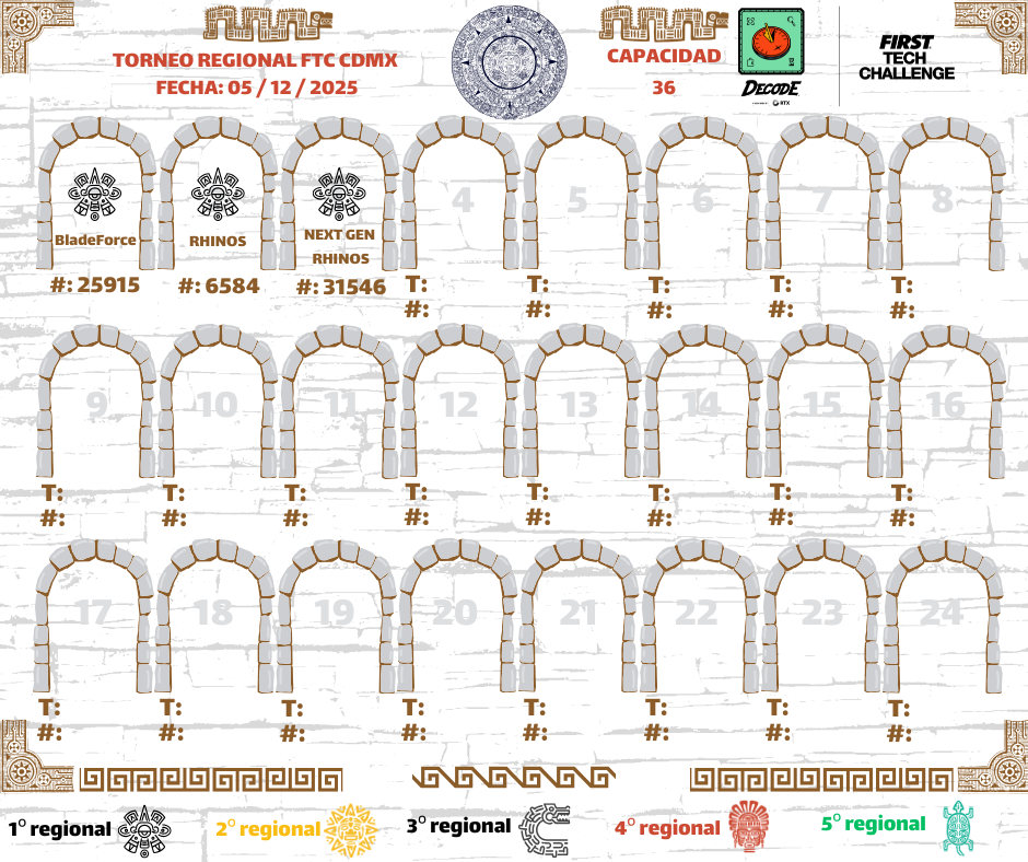 Nos complace darles la bienvenida al Regional FTC CDMX, un evento en el que los equipos tendrán la oportunidad de demostrar sus habilidades en diseño, programación, estrategia y trabajo en equipo, mientras forman parte de la comunidad de FIRST Tech Challenge en México.