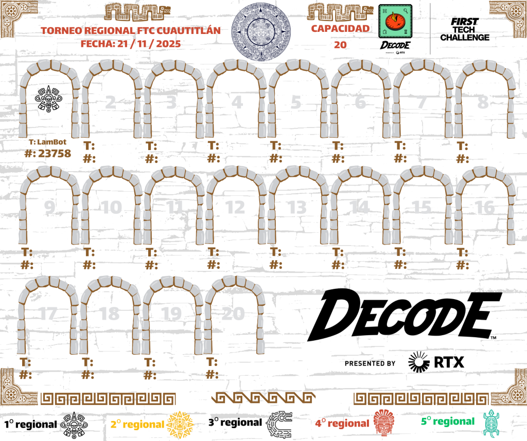 Nos complace darles la bienvenida al Regional FTC CUAUTITLÁN, un evento en el que los equipos tendrán la oportunidad de demostrar sus habilidades en diseño, programación, estrategia y trabajo en equipo, mientras forman parte de la comunidad de FIRST Tech Challenge en México.