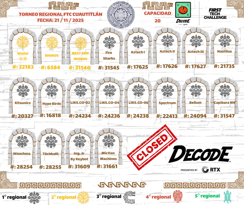 Nos complace darles la bienvenida al Regional FTC CUAUTITLÁN, un evento en el que los equipos tendrán la oportunidad de demostrar sus habilidades en diseño, programación, estrategia y trabajo en equipo, mientras forman parte de la comunidad de FIRST Tech Challenge en México.
