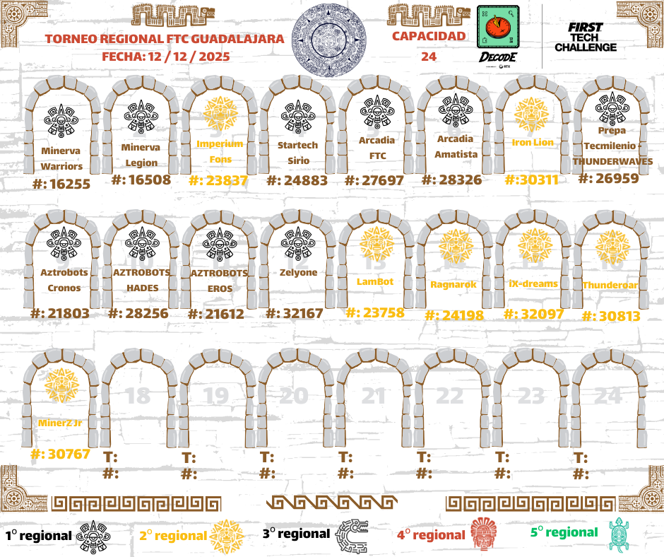 Nos complace darles la bienvenida al Regional FTC GUADALAJARA, un evento en el que los equipos tendrán la oportunidad de demostrar sus habilidades en diseño, programación, estrategia y trabajo en equipo, mientras forman parte de la comunidad de FIRST Tech Challenge en México.